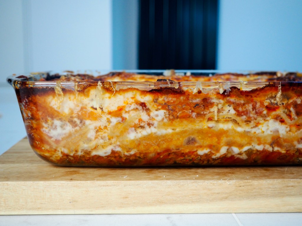 - It’s time to layer your lasagne! Start with the mince, then add a layer of lasagne sheets, over the lasagne sheets add the béchamel and repeat.