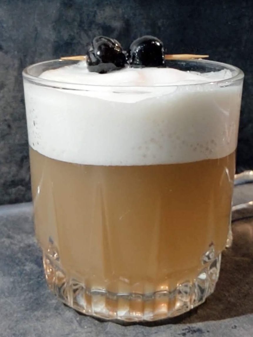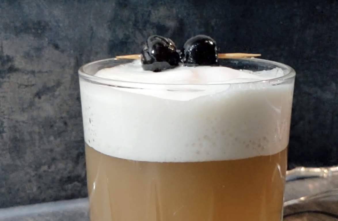 1. Pour the amaretto, lemon juice and egg white into a blender. Whiz it up for 15 seconds until it gets nice and frothy.Add ice to the blender and pulse twice.