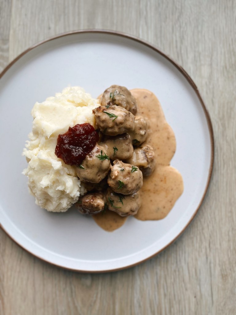- Serve up alongside, mashed potato, top with cranberry sauce or lingonberry if you’ve had a trip to IKEA recently and top with fresh dill. Enjoy!