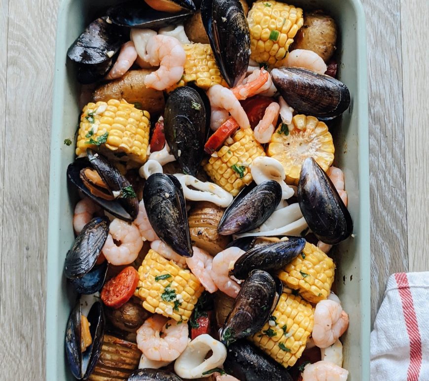 This garlicky one pan seafood dish may not be a dish for kissing, but it’s certainly a crowd pleaser and bonus, it saves on washing up! The seafood is full of Vitamin B12 and zinc to help balance hormones and low mood. Now go and stock up on chewing gum. Stage of cycle: Menstruation Prep & cook time: 50 mins Serves 3-4 Ingredients: 350g new … Continue reading Seafood Roast